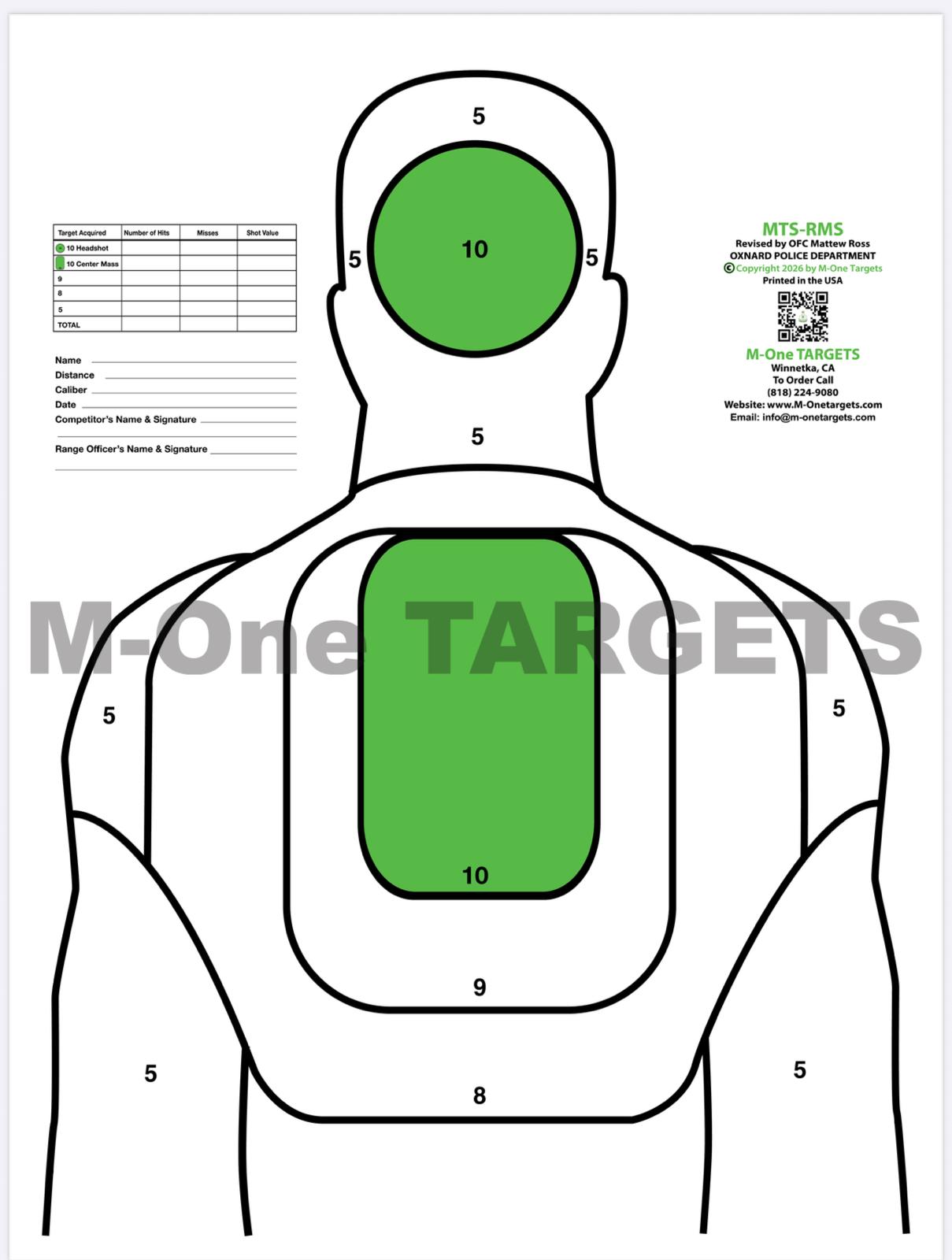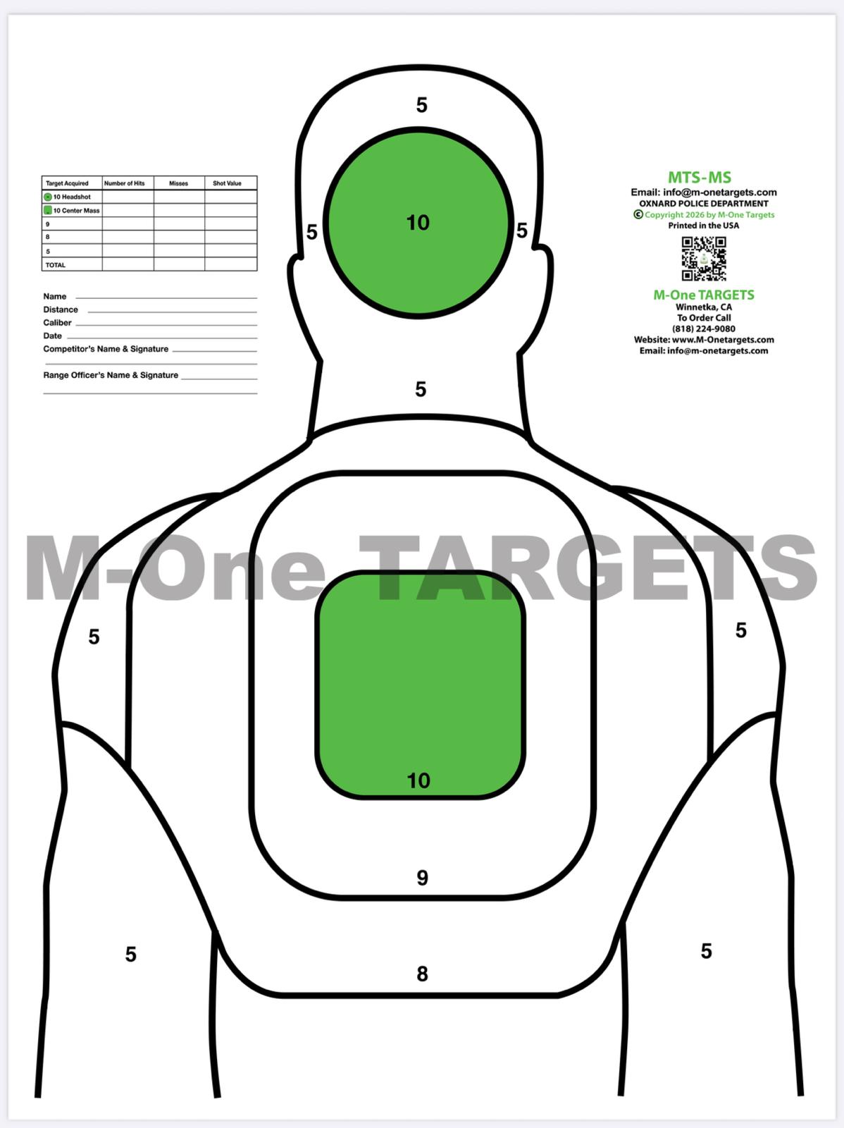M-One TARGETS, a veteran / woman owned company established in 2006, is dedicated to improving firearms training skills. Our copyrighted and high-quality targets are now utilized by military, law enforcement agencies, security agencies, firearm instructors, firing ranges, television shows, and Hollywood movies across the United States and Globally.
