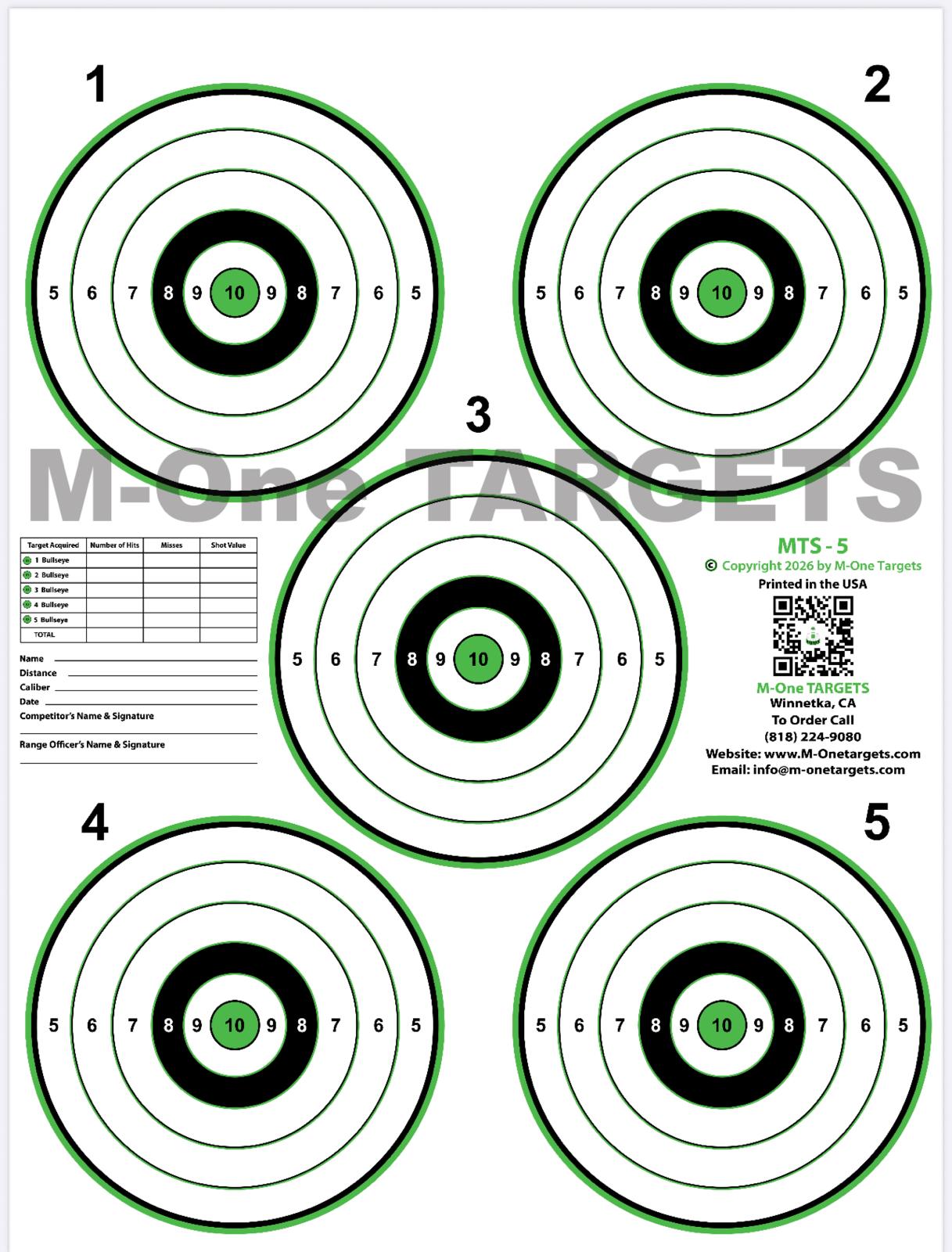 The MTS-5 target is perfect for small bore shooting enthusiasts, offering five targets on a single sheet. Ideal for distances up to 50 yards, this target provides ample opportunities to refine your aim and technique, making it an excellent choice for precision practice and training.